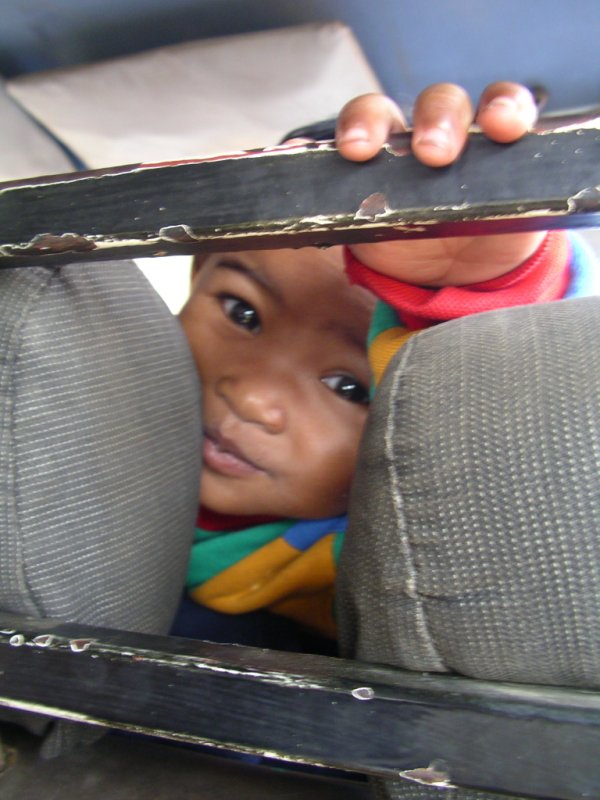 Il primo trasferimento è l'occasione del nostro incontro con il "taxi-brousse", il mezzo di trasporto con cui percorreremo il paese. Si tratta del classico minibus, 15 posti "teorici", in pratica possono essere molti di più; a seconda del posto, o non c'è spazio per le ginocchia, o per i piedi; parte ad orari fissi (che sono sempre "fra dieci minuti")... ma solo se è pieno; quando è pieno parte a fare un giro per caricare altri passeggeri, e ritorna al punto di partenza; sembra un bus londinese, sopra c'è un "secondo piano" dello stesso volume, fatto di mercanzie; le mercanzie sono protette da un telo impermeabile che lascia scoperto solo un angolo, in corrispondenza del proprio zaino. Dunque il nostro "battesimo" dura 14 ore (per circa 400 km), con innumerevoli soste di cui diverse passate con qualcuno che armeggiava nel vano motore. Mica male, come inizio.