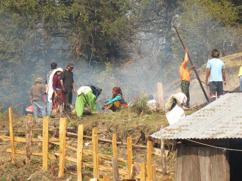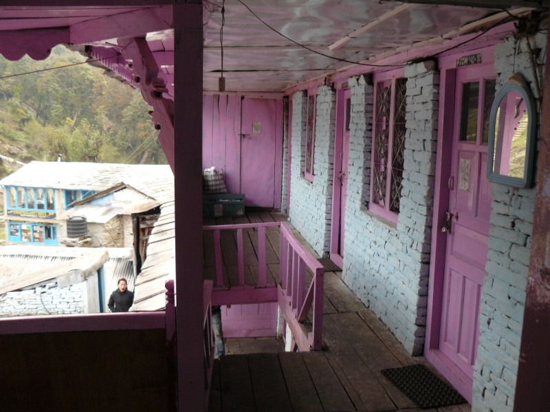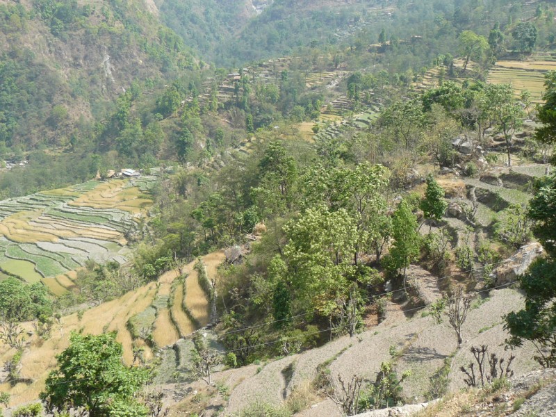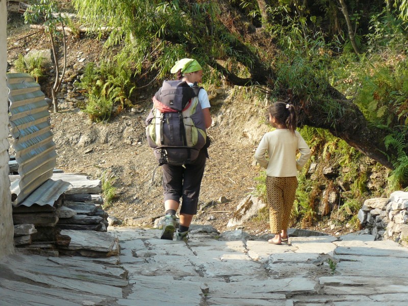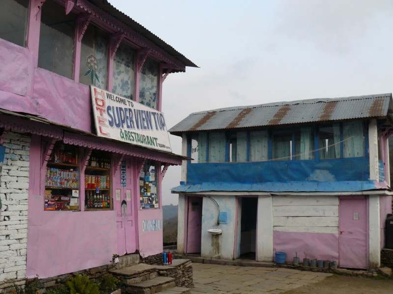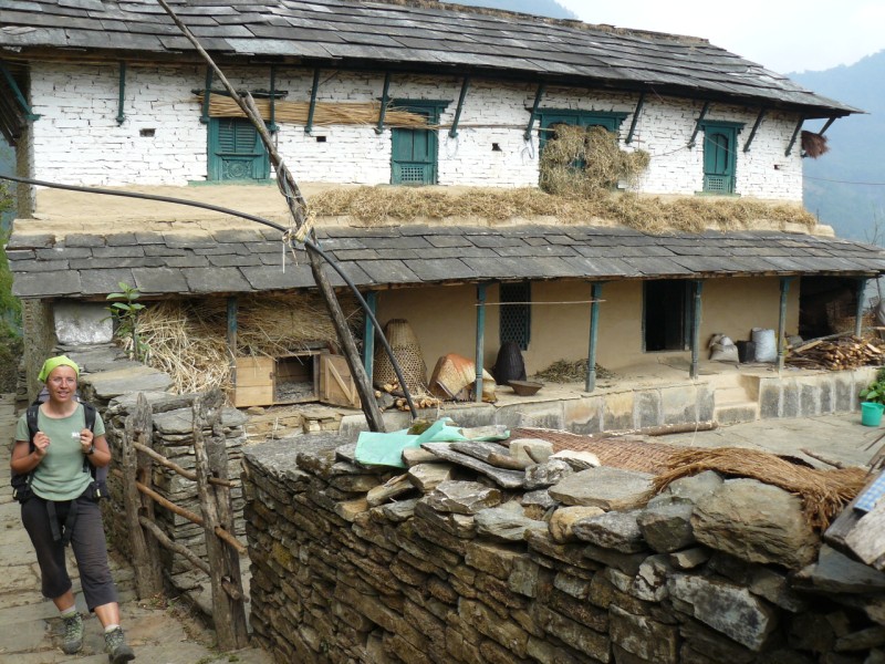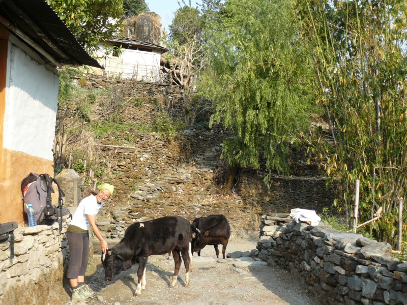 al punto panoramico di Tadapani, scendiamo al grande villaggio di Ghandruk e