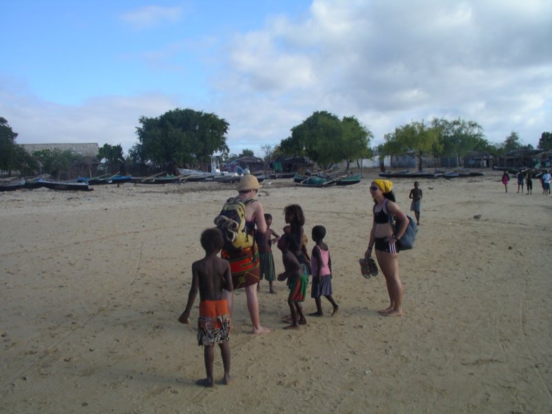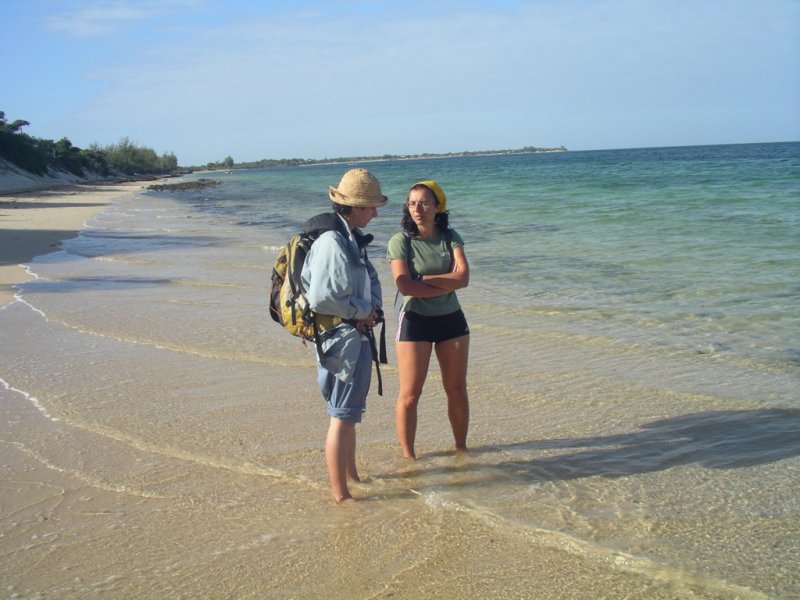 A Mangily c'è un gran movimento, e facciamo quasi fatica a trovare una camera che ci aggradi. E' lunedì di Pasquetta, e i Malgasci sono tutti a fare il picnic come da tradizione, in questo caso alla spiaggia. Passeggiamo sulla spiaggia fino a Ifaty, il villaggio vicino, dove non ci sono alberghi ma case di pescatori. E per strada troviamo un albergo più tranquillo, gestito da una coppia di Provenzali (Caroline ritrova la parlata della sua terra); il giorno dopo ci trasferiamo, e facciamo un giro in piroga fino alla barriera corallina per usare maschera e boccaglio che ci siamo portati dietro. |