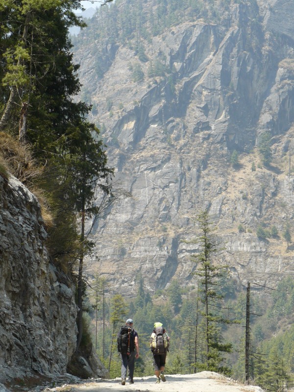 Pisang lasciamo la mulattiera di fondovalle per lo spettacolare sentiero